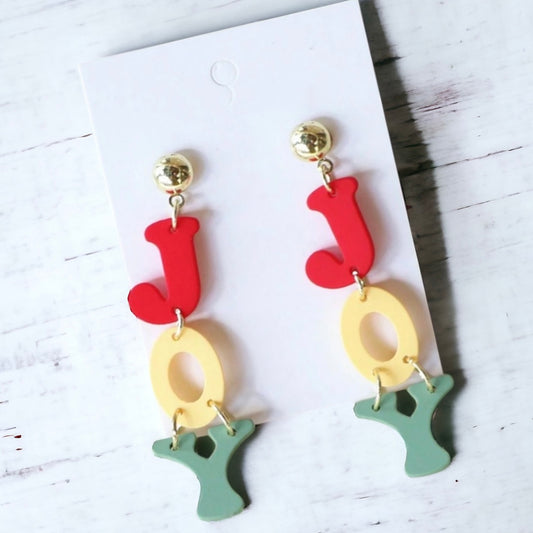 Beautiful Acrylic Tri-Color "JOY" Christmas Earrings