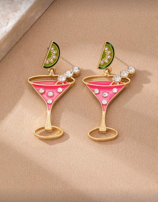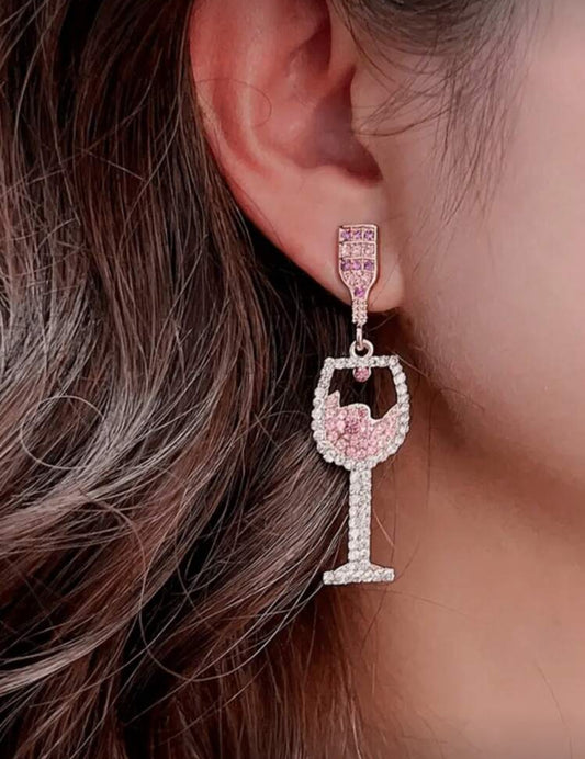 Beautiful Wine Glass Shaped Pink Rhinestone Earrings