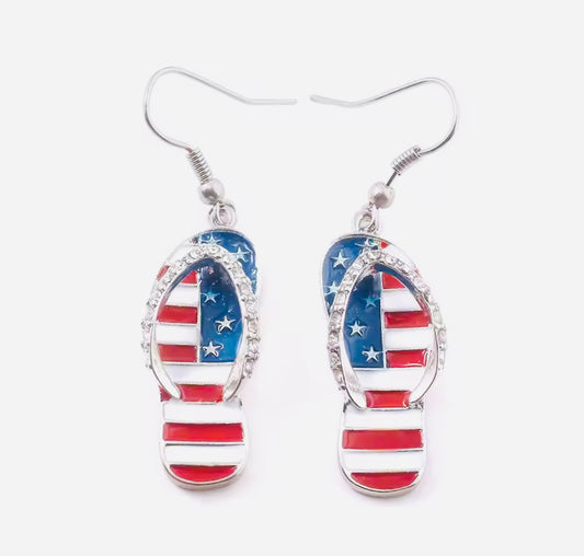 Beautiful American Flag Flip Flop Earrings
