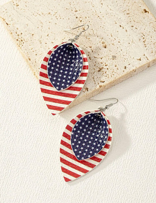 Folded Leather American Flag Earrings