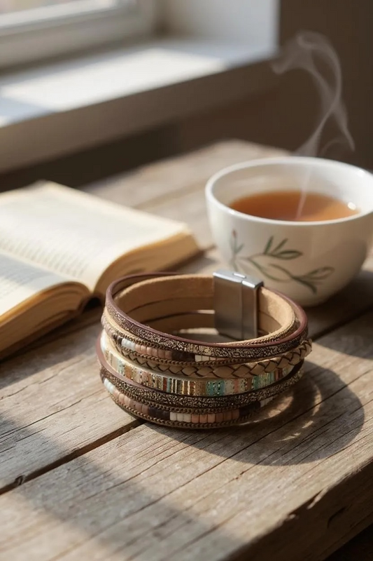 Beautiful Multilayered White Bracelet with Magnetic Clasp