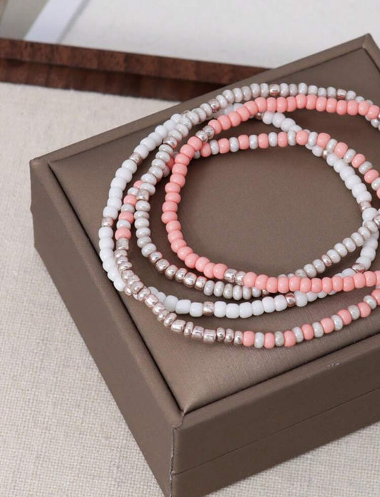 Beautiful Set of 4 Pink, White, and Gray Beaded Bracelets