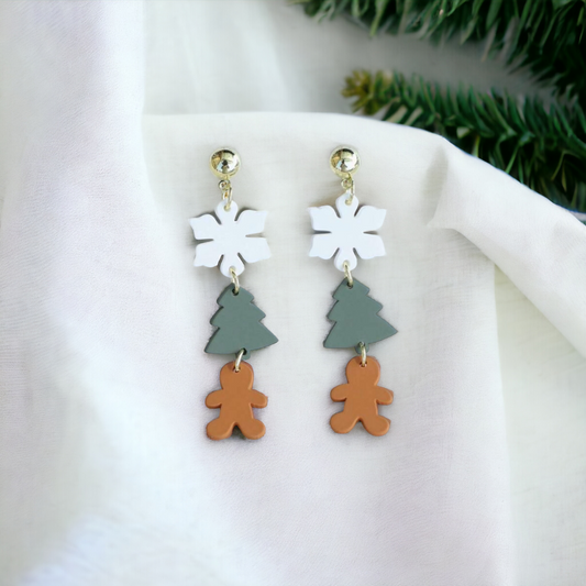 Acrylic Snowflake, Christmas Tree, and Gingerbread Man Holiday Stud Drop Earrings