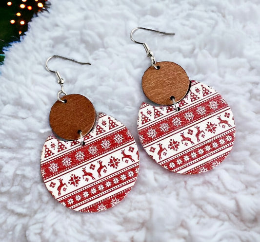 Beautiful Red and White Christmas Striped Wooden Earrings