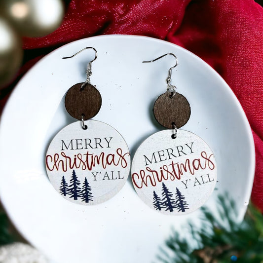 Merry Christmas Ya'll Wooden Drop Earrings