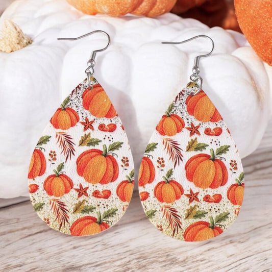Beautiful Leather Pumpkin Teardrop Earrings