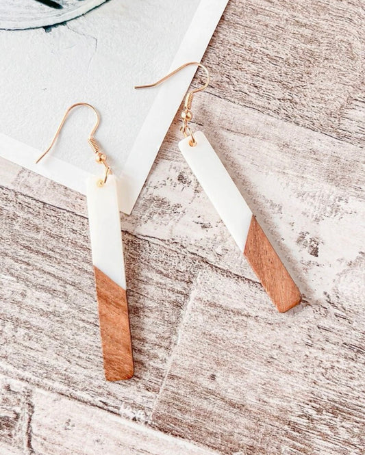 Beautiful Wood and White Resin Bar Earrings