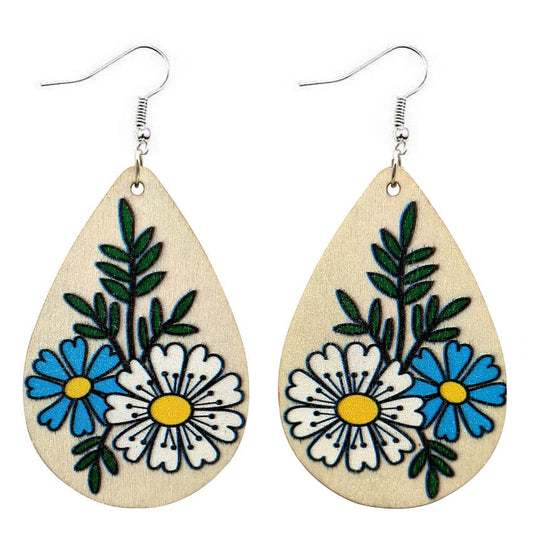 Beautiful Wooden Floral Daisy Bouquet Dangle Earrings