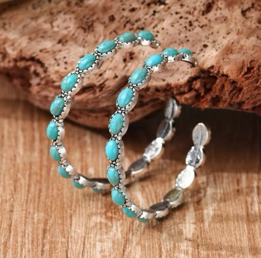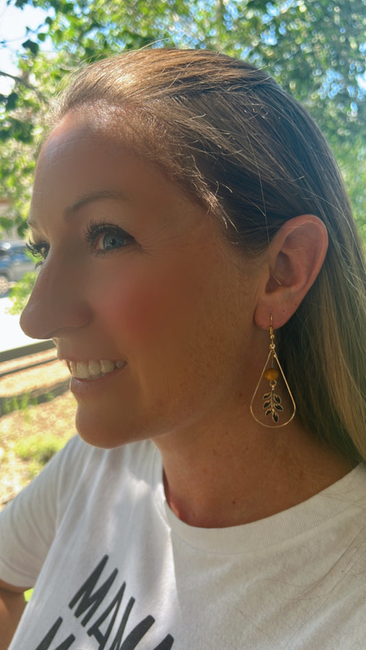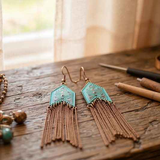 Vintage Drop Earrings with Turquoise and Tan Accents