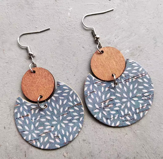 Round Air Force Blue Wood and Cork Earrings