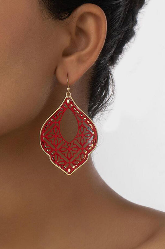 Red Geometric Drop Earrings