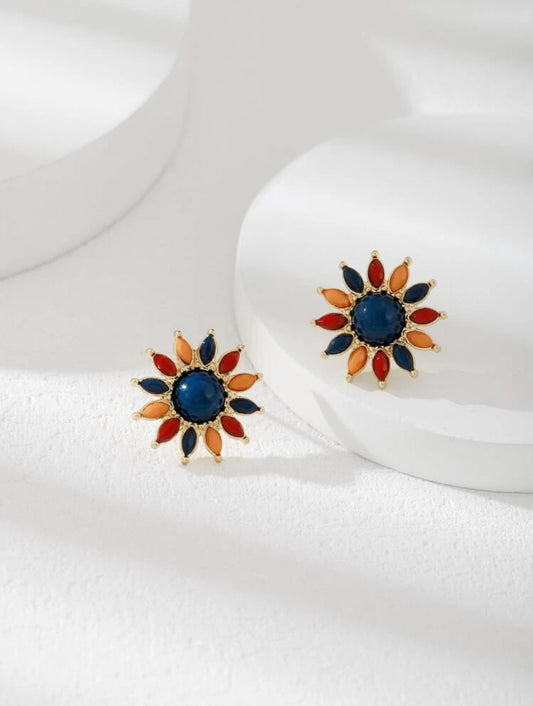 Beautiful Yellow and White Mismatched Flower Stud Earrings