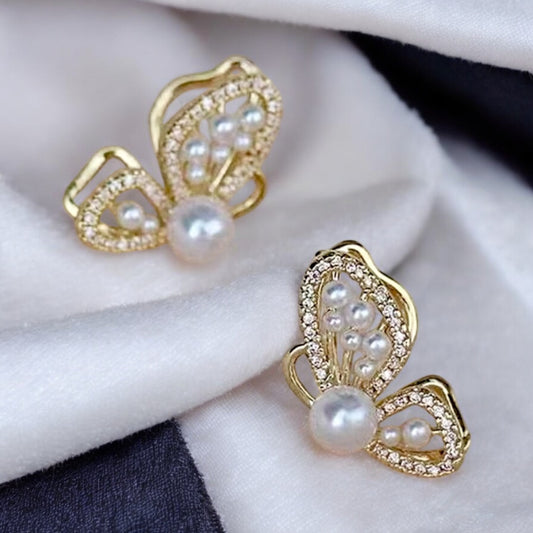Gorgeous Gold Butterfly Earrings with Pearl Accents