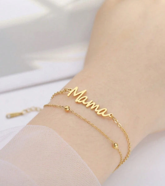 Beautiful Double Layer Silver or Gold "Mama" Bracelet