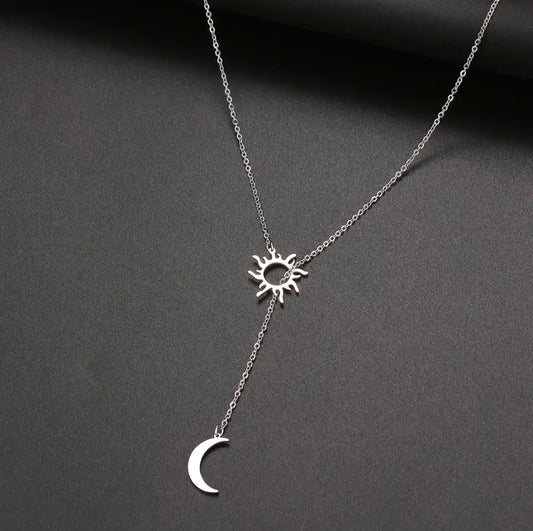 Stainless Steel Silver or Gold Sun and Moon Necklace