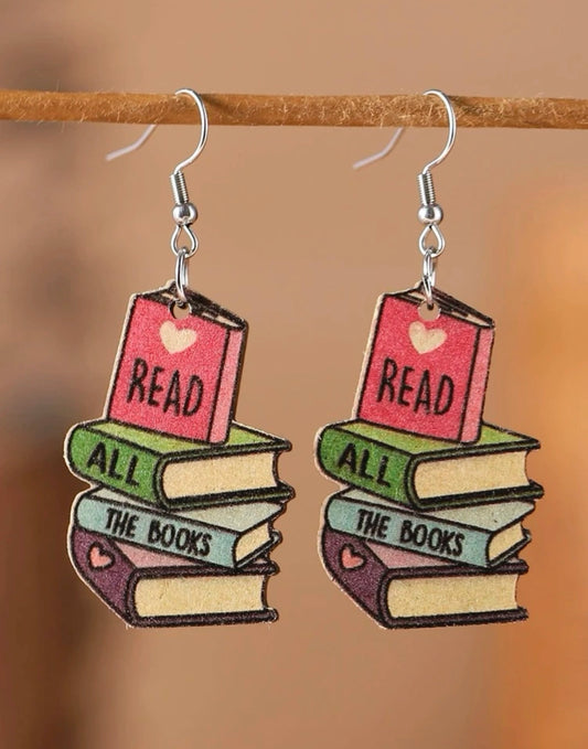 Beautiful Vintage Apple, Book, and Pencil Heart Drop Earrings