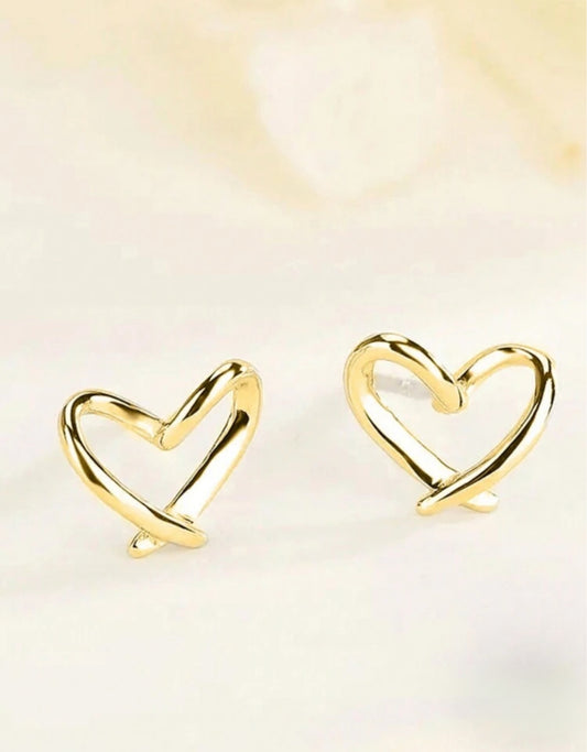 Beautiful Silver or Gold Twisted Heart Stud Earrings