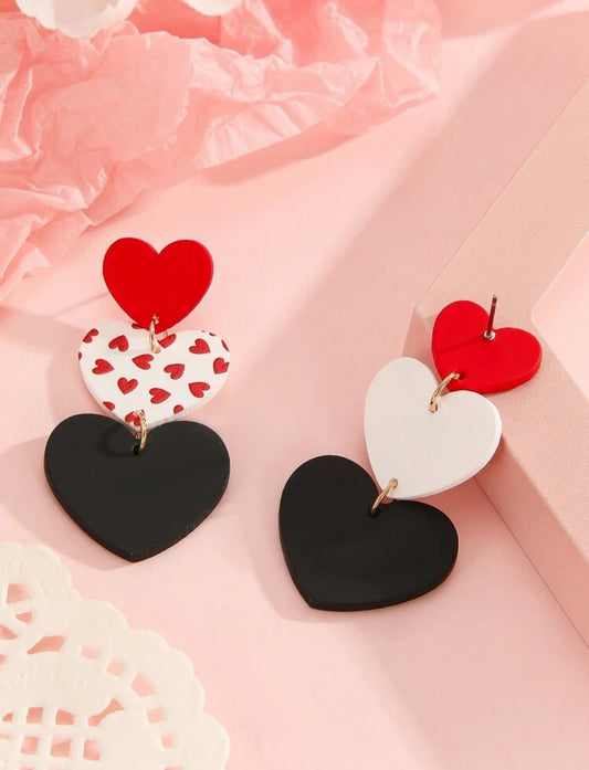 Beautiful Tri-Color Acrylic Heart Stud Drop Earrings
