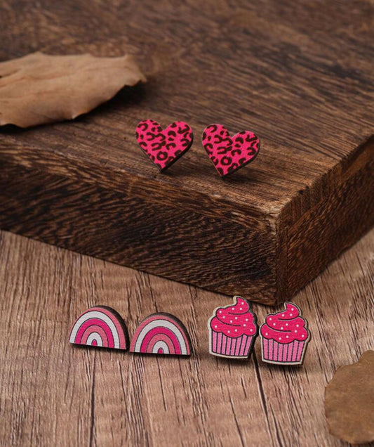 Beautiful Set of 3 Heart-Shaped Stud Earrings